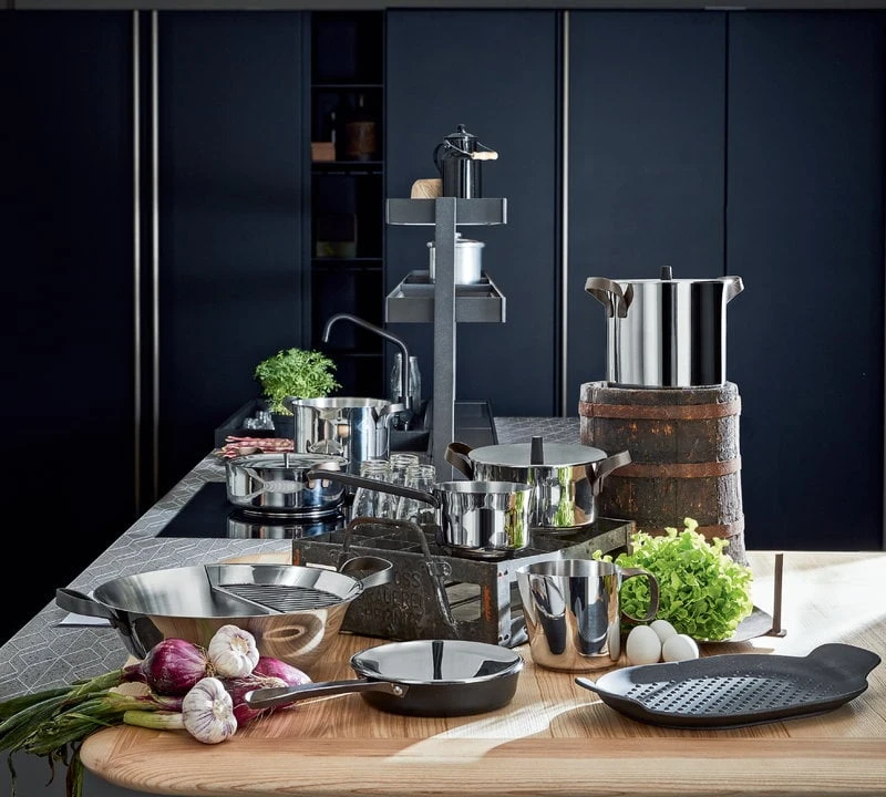 Alessin Edo-kokoelma on saanut nimensä kahdesta eri ilmansuunnasta: nimi viittaa latinan kielen syömistä tarkoittavaan sanaan ”edere”, ja lisäksi Edo on Tokion kaupungin muinainen nimi. Kokoelman saumattomassa muotokielessä kohtaavatkin italialainen osaaminen sekä japanilaiset muotoiluvaikutteet. Patricia Urquiolan espanjalaistausta näkyy puolestaan kokoelman kattilankansissa, jotka ovat saaneet inspiraationsa baskilaisten kappeleiden muodosta. Edo-pannujen ja kattiloiden tunnistettavin piirre ovat niiden ruskeasävyiset kahvat, joiden pehmeä muoto jäljittelee taivutettua kangasnauhaa. Edo hämmentää yhteen eri vaikutteita harmoniseksi, toimivaksi ja inspiroivaksi kokonaisuudeksi, joka kutsuu nauttimaan ruoanlaitosta.