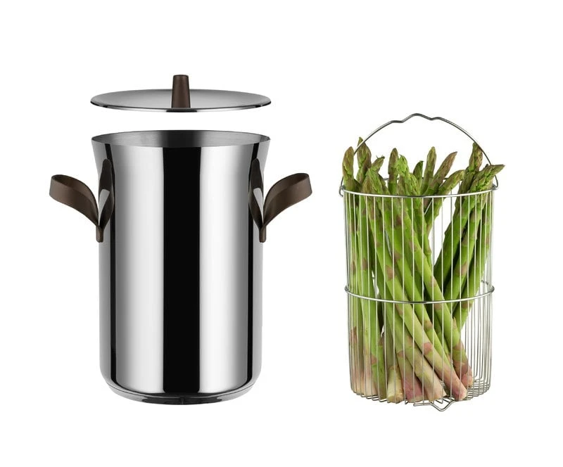 Edo-parsakattila on suunniteltu erityisesti parsojen kypsentämiseen: kapea ja korkea kattila mahdollistaa parsojen keittämisen pystyasennossa niin, että parsojen nuput jäävät veden pinnan yläpuolelle kypsymään vesihöyryssä. Parsakauden ulkopuolella keittokorilla varustettu parsakattila sopii vaikkapa vihannesten tai spagetin keittämiseen. Patricia Urquiolan Alessille suunnittelema Edo-parsakattila on valmistettu ruostumattomasta teräksestä ja viimeistelty ilmeikkäillä tummanruskeilla kahvoilla.