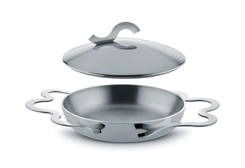 Alessin Tegamino-munapannun on suunnitellut italialainen Alessandro Mendini gastronomiaekspertti Alberto Gozzin konsultoimana. Näppärän kokoinen Tegamino-pannu on varustettu tukevalla teräskannella ja kahdella aaltoilevasti muotoilulla kahvalla. Tegamino on samaan aikaan hienostuneen tyylikäs ja kepeän hauska – kiiltävän teräspannun siluetti muistuttaa pannulla paistuvaa kananmunaa. Korkeilla reunoilla varustettu Tegamino soveltuu niin munien ja munakkaiden paistamiseen kuin kananmunien keittämiseen, ja sen iloisen tyylikäs ilme sopii myös ruokien tarjoiluun suoraan pannusta.