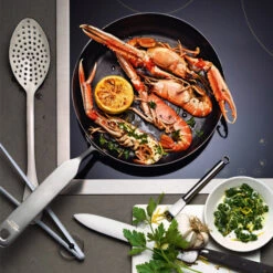 Kauniisti kaartuvilla mustilla teräskahvoilla viimeistellyt Prima Matera -kokoelman pannut ja kattilat sopivat kaikille liesityypeille, ja niiden kanssa voi käyttää myös metallisia työvälineitä. Pannut kestävät hyvinkin kuumia lämpötiloja ja sopivat erinomaisesti ruoan karamellisointiin. Sarja on valmistettu Ranskassa.