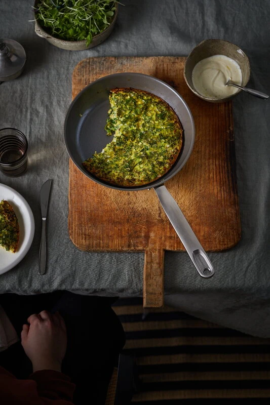 Fiskarsin All Steel -paistinpannussa kohtaavat käytännöllisyys, kestävyys ja hienostunut arjen luksus. Sarjan pienin paistinpannu on valmistettu korkealaatuisesta ruostumattomasta teräksestä, ja siinä on kaikille liesille sopiva, pinnoittamaton kolmikerrospohja sekä erityinen Ceratec-pinnoite, joka johtaa lämpöä tehokkaasti, takaa kauniin paistopinnan ja estää ruoan tarttumisen pannuun. Muiden All Steel -tuotteiden tapaan paistinpannu on täysin muoviton, kestää lämpöä 270 asteeseen asti ja sen voi huoletta pestä astianpesukoneessa.