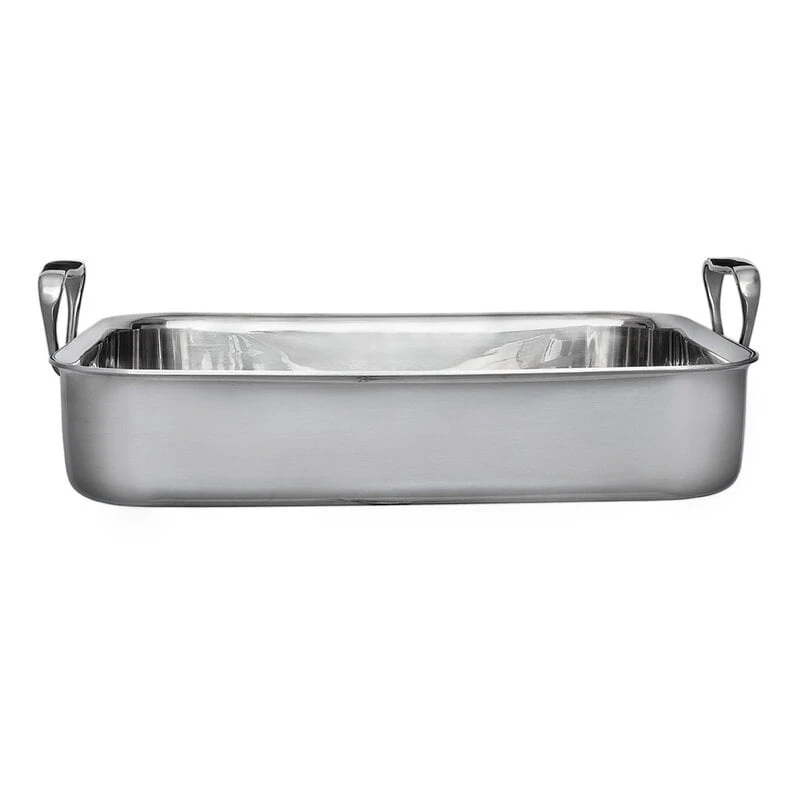 Heirolin Servire-sarjan teräksinen uunivuoka on ajattomasti muotoiltu vuoka, joka soveltuu mainiosti jopa ammattilaiskäyttöön. Kahvallinen uunivuoka on valmistettu laadukkaasta teräksestä, jonka kolme kerrosta varaavat ja jakavat lämpöä tehokkaasti kypsyttäen ruoan tasaisesti. Uunivuoka soveltuu käytettäväksi niin uunissa kuin kaikilla liesityypeillä.