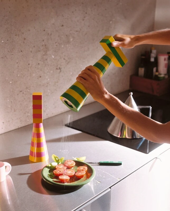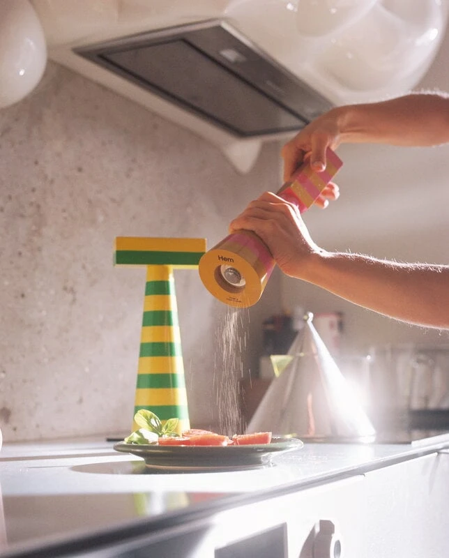 Hemin Molino-maustemylly hämärtää rajaa arkisen käyttöesineen ja veistoksellisen koriste-esineen välillä: raidallinen maustemylly on nimittäin niitä molempia. Maustemyllyn leikkisä muotokieli ja kirkkaat värit ovat saaneet vaikutteita suunnittelija Fabien Cappellon kotimaan Meksikon energiasta ja eloisuudesta. Molino-mylly valmistetaan massiivipyökistä ja maalataan käsin, mikä antaa jokaiselle esineelle ainutlaatuisen ulkonäön ja luonteen. Kiiltävä lakkapinta viimeistelee maustemyllyn huolitellun mutta rennon riemukkaan ilmeen. Molino-maustemylly tuo eloa ja iloa kattauksiin – tätä myllyä käyttää niin mielellään, että ruoasta uhkaa tulla liiankin hyvin maustettua!