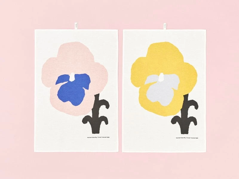 Kaunisteen Orvokki-keittiöpyyhettä somistaa yksityiskohta Hannele Äijälän suunnittelemasta kukkakuosista, jossa hehkuvat suuret siniset ja vaaleanpunaiset orvokit. Keittiöpyyhe on valmistettu pellavan ja puuvillan sekoitteesta, ja sen yläreunasta löytyy kätevä ripustuslenkki.