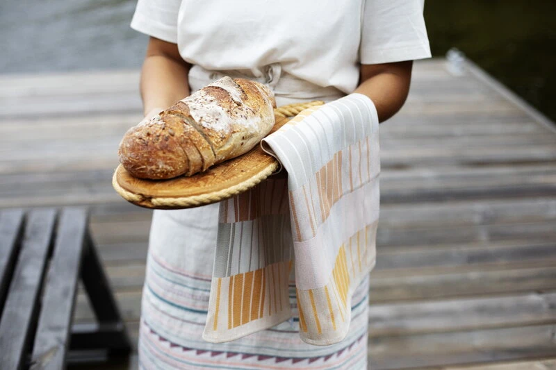 Lapuan Kankureiden Sointu-keittiöpyyhkeessä on Helmi Liikasen suunnittelema rytmikäs, jacquardkudottu ruutukuosi, joka muistuttaa pianon koskettimia. Eri värisistä raidoista ja ruuduista muodostuva kuvio toistuu pyyhkeen eri puolilla vastakkaisissa väreissä.