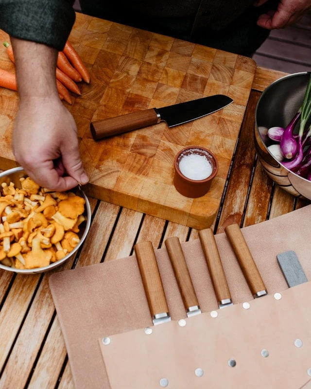 Marttiinin Eräkokki-kokkiveitsi sopii keittiön yleisveitseksi kaikkeen ruoanlaittoon: sillä voi muun muassa leikata lihan, pilkkoa kasvikset ja paloitella sienet. Keittiöveitsen mukana toimitetaan myös nahkatuppi, joka tuo sen pelkistettyyn ilmeeseen annoksen aitoa erätunnelmaa ja suojaa veistä säilytyksen aikana.