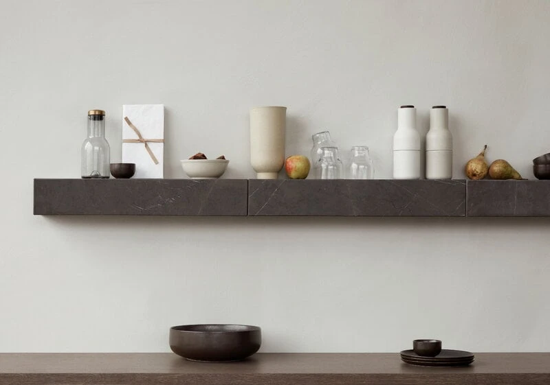 Pakkaukseen kuuluu kaksi erisävyistä Bottle Grinder -maustemyllyä puisilla säätönupeilla varustettuina. Myllyt on valmistettu laadukkaasta keramiikasta ja viimeistelty mattalasituksella, jonka pienet tummat pisteet ja epätäydellisyydet antavat maustemyllyille viehättävän käsin tehdyn ilmeen.